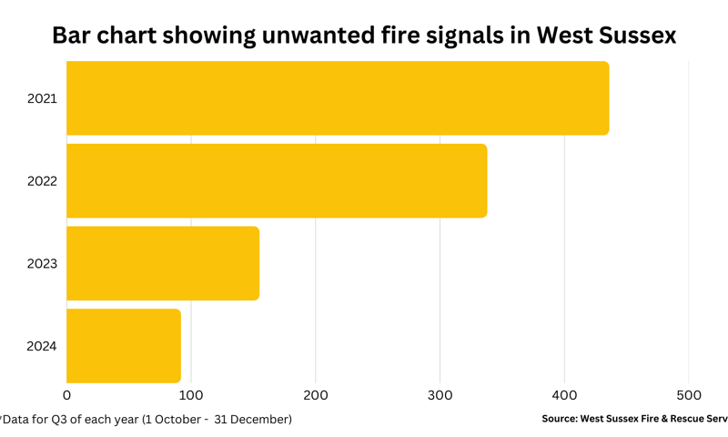 West Sussex Fire & Rescue Service responded to less than one unwanted fire signal per day during the previous quarter.