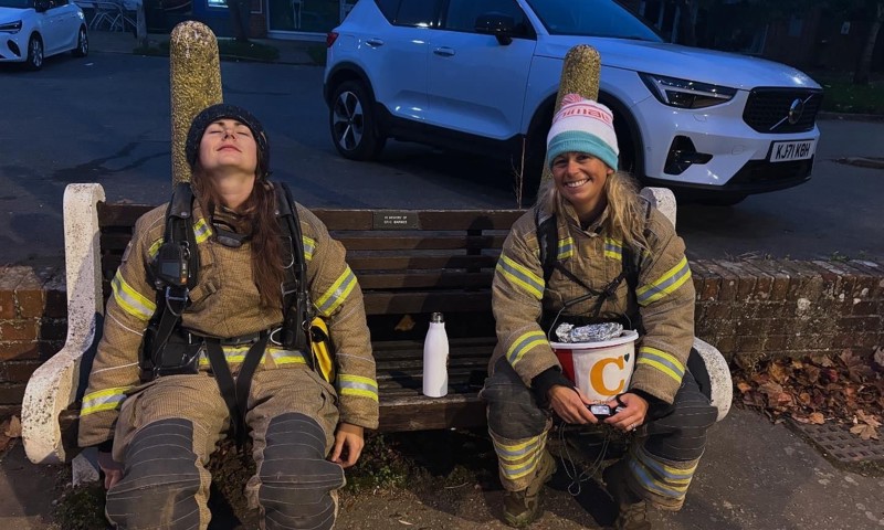 Jordie O’Hara and Katie Gray set off from East Grinstead Fire Station at 8am on Tuesday (5 November) and arrived at their destination of Selsey Fire Station 23-and-a-half hours later, wearing full fire kit and breathing apparatus for the entire journey.